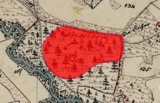Lageplan des Turmhügels Häuselberg auf dem Urkataster von Bayern | ||
