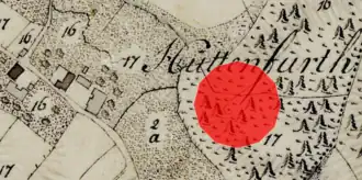 Lageplan des Turmhügels Hüttenfurth auf dem Urkataster von Bayern | ||