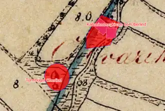 Lageplan des Turmhügels Oberlind auf dem Urkataster von Bayern | |
