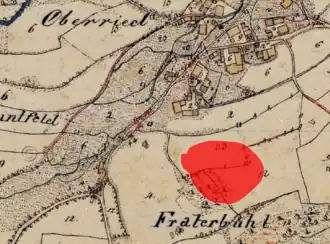 Lageplan des Turmhügel Oberrieds auf dem Urkataster von Bayern | |
