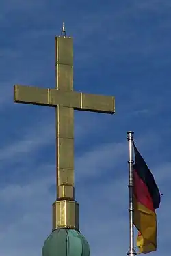 Das Kreuz hat heute eine Gesamtoberfläche von 5,85 m2 die mit einer mehrschichtig aufgebrachten Sturmgold-Folie ummantelt ist. Aus ästhetischen Gründen wurden bei der letzten Sanierung im Jahr 1994 auch alle am Kreuz sichtbaren Teile der Blitzschutztechnik und die etwa 250 Halteschrauben aufwändig vergoldet. Die Arbeiten wurden von der Firma Mangold (Struth-Helmershof) vor Ort ausgeführt.[1][2]