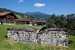 Die westliche und neben der Burg Rudenz und Burg Zwingel die älteste der drei Burgen von Giswil steht inmitten der Häuser des Kleinteils zwischen der Kapelle und dem Hotel Alpenrösli. Die konservierte Turmruine hat ein quadratisches Grundmass von 9,30 m × 9,30 m, die Mauern sind etwa 2 Meter dick und ragen noch über 2 Meter aus dem umgebenden Wiesland. Eine grosse Fensteröffnung ist am oberen Rand der Mauerreste erkennbar.