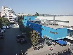Im September 2005 wurde das Sport Center Bornheim (SCB) in der Inheidener Straße am Bornheimer Hang nördlich des ehemaligen Panoramabads oberhalb der Charles-Hallgarten-Schule eröffnet. Das Sport Center verfügt über eine Kletterwand und ein Fitnessstudio.[26] Am 23. Oktober 2010 erfolgte der erste Spatenstich für das SCB2. Der Erweiterungsbau mit 2250 m² Nutzfläche wurde am 10. September 2011 eröffnet. In dem Anbau befindet sich ein neues auf 1000 m² vergrößertes Fitnessstudio und eine zweite 300 m² große Sauna-Landschaft mit Sauna, Sanarium und einer Erlebnissauna mit einer Video-Wand aus 4 Flachbildschirmen. Darüber hinaus stehen in diesem Wellness-Bereich ein Tauchbecken, eine Eismaschine und ein großer Ruhebereich mit künstlichem Sternenhimmel zur Verfügung. Die große Außen-Terrasse ursprünglich auch mit Strandkörben ermöglicht einen Panoramablick über den Bornheimer Hang in Richtung Osten zum Lohrberg, Seckbach, Bergen-Enkheim und bis nach Hanau. Es werden von den Saunameistern auch Aufgüsse angeboten, teilweise als Erlebnis-Aufguss oder als Kneipp-Aufguss mit Wacheltuch oder mit Fächer.[26] Außerdem sind weitere Übungsräume für Yoga und Pilates entstanden. Das ebenfalls mit dem Anbau errichtete Blockheizkraftwerk und die neu installierte Photovoltaikanlage erzeugen Energie für das bisherige SCB1 und das neue SCB2.[22][27] Der vorgesehene Bau einer Tiefgarage musste wegen fehlender Zuschüsse der Stadt Frankfurt abgesagt werden.[4][28] Das SCB hat etwa 2000 Besucher pro Tag.[29] 2014 wurden die Umkleiden im SCB2 ausgebaut. Darüber hinaus wurde im August 2015 der Bau des SCB3 auf Stelzen begonnen, das am 17. September 2016 eröffnet wurde. Dieses befindet sich zwischen dem bisherigen SCB1 und SCB2 sowie dem angrenzenden ehemaligen Panoramabad. Es beinhaltet drei Gymnastikräume im ersten sowie drei Gymnastiksäle und einen großen Fitnessraum im zweiten Obergeschoss. Alle sind nach verschiedenen Themen gestaltet. Eine Besonderheit ist das Beach Gym, dessen Boden mit drei Tonnen gewaschenem Sand belegt ist. Dieses besitzt eine eigene Reinigungszone mit Druckluftdüsen. Auf dem Dach des rund 20 Meter hohen Neubaus befindet sich ein rundherum geschlossener Kunstrasenplatz. An der Außenfassade befand sich bis zum Bau des SCB4 von 2016 bis 2022 eine 15 Meter hohe und neun Meter breite Kletterwand, die danach an das SCB4 verlegt wurde. Das SCB3 steht über einem Parkdeck mit 144 Parkplätzen (davon 99 für die Besucher der TG Bornheim und 45 für die Besucher des ehemaligen Panoramabades).[30][24][25][31] Am 15. September 2018 wurde im Fitness-Studio ein neues Rücken- und Beweglichkeitszentrum sowie eine Erlebnissauna mit einem vierteiligen Display zur Anzeige verschiedener Landschaftsfilme eröffnet.[32] Eine weitere Erweiterung des SCB war ursprünglich bis zum April 2021 als SCB4 geplant. Der Baubeginn erfolgte wegen der Corona-Krise dann im April 2022 und wurde am 9. September 2023 eröffnet. Er beinhaltet im untersten Stockwerk ein Schwimmbad (22,5 × 7,7 Meter, 1,35 bis 1,80 Meter tief) mit dem Namen Aqua Gym für Kurse mit Umkleiden und Duschen. Dieses entspannt unter anderem die Knappheit von Wasserflächen für Schwimmunterricht in Frankfurt am Main.[33] Auf der zweiten Etage befindet sich ein 340 Quadratmeter großes Jungle Gym mit Grünpflanzen, in dem unter anderem Bungee Fitness mit an Gummiseilen hängenden Gurten angeboten wird. Im obersten Geschoss befindet sich ein 190 Quadratmeter großes Dōjō (Fight Gym) für Kampfsportarten und ein weiterer Bewegungsraum (Mountain Gym), in dem unter anderem Poledance und Mini-Slackline mit Giboards angeboten wird. Auf dem Dach wurde eine Photovoltaikanlage installiert. Die Kletterwand wurde von der ehemaligen Fassade des SCB3 an das neue SCB4 an die Wand neben dem Bürgersteig in der Inheidener Straße verlegt. Für das SCB4 waren Kosten von 6 Millionen Euro geplant, insgesamt kostete der Anbau 7,42 Millionen Euro, die von der Stadt Frankfurt am Main und dem Land Hessen gefördert wurden.[19][2] Eine weitere Erweiterung des SCB war 2023 nicht geplant.[33]