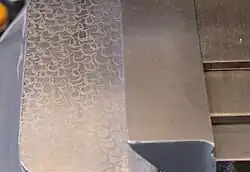 Wie bei allen Zerspanwerkzeugen hat der für den Werkstoffabtrag verantwortliche Schneidenteil eine Keilform. Um ein zu tiefes Eindringen der Werkzeugschneide in den Werkstoff zu verhindern, hält man die Summe von Freiwinkel und Keilwinkel größer als 90 °. Es entsteht so ein negativer Spanwinkel.[7] Beim Schaben ebener Flächen wird zunächst ein Flachschaber verwendet, zum Nachschaben wird ein Ziehschaber eingesetzt. Für gewölbte Flächen, z. B. bei Gleitlagern, verwendet man Dreikantschaber und Löffelschaber.