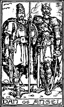 - ↑ Er gilt als der erste König der Dänen und der, der dem Volk seinen Namen gab. Er ist jedoch eher eine mythologische, denn eine historische Figur. Dan wird in den Lejre-krøniken, der Ynglingasaga und bei Saxo Grammaticus erwähnt. Der Letztere bezieht sich auch auf zwei andere Könige namens Dan. Die Liste der dänischen Sagenkönige führt Halfdan den Gamle (Halfdan der Alte) auf, mit dem er identisch sein soll.