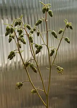 Der Blütenstand besteht aus bis zu 20 Zentimeter, manchmal auch bis 38 Zentimeter, hohen Thyrsen, die drei bis fünf ausgebreitete Monochasien tragen, an denen die Einzelblüten hängen. Die Kelchblätter werden 6 bis 7 Millimeter lang. Die röhrige Blütenkrone ist gelblich-grün gefärbt und wird 7 bis 15 Millimeter lang. Sie ist drüsig-flaumhaarig behaart und die Zipfel sind ausgebreitet bis zurückgebogen.