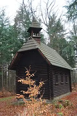 - Hölzerne Kapelle des hl. Hubertus, erbaut 1903 anlässlich der Goldenen Hochzeit Karls III. zu Schwarzenberg