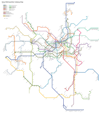 - Seoul Metro betreibt die Linie 2, die unterirdischen Teile der Linie 1 sowie große Teile der Linien 3 und 4, die Linien 5 bis 8.