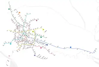 Der zentrale Abschnitt der Linie 5 wurde im Oktober 2018 eröffnet und seitdem mehrmals um kurze Abschnitte verlängert. Die Strecke ist nun 36 Kilometer lang und hat 29 Stationen.[3]