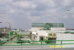 Der Bahnsteig liegt ebenerdig und ist barrierefrei zugänglich. Zur Überquerung des Gleiskörpers dienen zwei Aufzüge.[1] In unmittelbarer Nähe befinden sich ein Bus-Terminal und eine Park-and-Ride-Anlage.