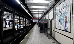 Wie die meisten U-Bahnhöfe der Strecke, erhielt auch dieser Bahnhof zwei 100 Meter lange Seitenbahnsteige. Als Kennfarbe für das Bahnsteigmobiliar, Säulen und Zierleisten wurde Schwarzblau gewählt, während die Wände in weiß gefliest wurden.
