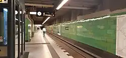 Für 2013 plante die BVG eine Grundinstandsetzung des Bahnhofs. Für rund 12,8 Millionen Euro werden u. a. die Treppenanlagen, Vorhallen, Aufzüge und Rolltreppen erneuert.[1] Die Sanierung beinhaltet eine vollständige Neugestaltung der Bahnsteige durch die Architekten Petra und Paul Kahlfeldt. Hierbei wird die ursprüngliche farbliche Differenzierung der beiden Ebenen zugunsten einer einheitlichen Wandgestaltung mit grün glasierten Fliesen aufgegeben.[2] Die Arbeiten sollten im Laufe des Jahres 2019 abgeschlossen werden,[3] nach neueren Angaben im April 2023,[4] doch im Herbst 2023 waren Teile des Bahnsteigs immer noch im Sanierungsprozess.