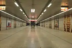Der Bahnsteig liegt in einer Tiefe von elf Metern. Über einen Aufzug ist er barrierefrei zugänglich.[1] Es bestehen Anschlüsse zu öffentlichen Buslinien.