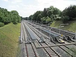 Nördlich des Bahnhofs und der Koppelstraße schließt eine sechsgleisige offene Abstellanlage an, an deren Seiten sich die Tunnelöffnungen für die Streckenweiterführung nach Niendorf befinden.