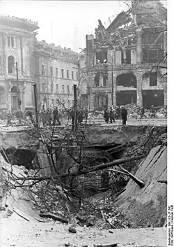 Am Bahnhof selbst änderte sich in den nächsten Jahren kaum etwas. Im Zweiten Weltkrieg erlitt der Bahnhof erhebliche Schäden. Besonders ein Bombentreffer am 3. Februar 1945 im östlichen Bahnhofsbereich zerstörte die Station erheblich. Zusätzlich kamen im April noch Wasserschäden aufgrund der Sprengung des Landwehrkanals hinzu. Deshalb konnte der Bahnhof im Gegensatz zu vielen anderen Berliner U-Bahnhöfen nicht bereits im Jahr 1945 wiedereröffnet werden. Zwar fuhren die ersten Züge der Linie AI beziehungsweise AII auf der Strecke wieder, doch hielten sie nicht am Bahnhof selbst. Erst am 7. Januar 1950 ging die wiederaufgebaute Station in Betrieb. Das Kassenhaus im Jugendstil wurde nicht wieder aufgebaut, es wurde durch vereinfachte Ein- beziehungsweise Ausgänge ersetzt.