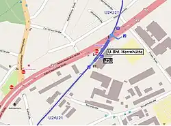 Der Bahnhof wird von der U-Bahn-Linie U2 bedient. An der Bushaltestelle Herrnhütte halten die Stadtbuslinien 30, 31 und 32 sowie die Linie 212. Am Wochenende verkehrt auch die Nachtbuslinie N1.