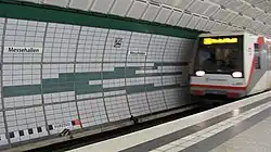 Der U-Bahnhof Messehallen ist eine Haltestelle der Hamburger U-Bahn-Linie U2. Das Kürzel der Station bei der Betreiber-Gesellschaft Hamburger Hochbahn lautet „MH“.[2] Der U-Bahnhof hat täglich 12.623 Ein- und Aussteiger (Mo–Fr, 2019)[3].