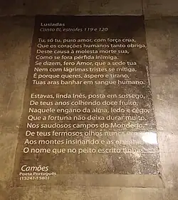 - O Paraíso [Das Paradies], von Betty Milan, an Wand angebrachte Blockbuchstaben (1995), verzinktes Blech mit goldfarbener Metallic-Farbe (4,00 × 5,00 m), Hauptzugang zum U-Bahnhof an der Praça Santa Generosa (−1)[10]