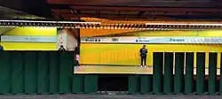 - Sem Título (Mural 5) [Ohne Titel (Wandbild 5)], von Odiléa Toscano, Malerei auf Beton (1990/1991), Acrylfarbe (3,20 × 33,00 m), Zwischengeschoss (−1)[9]