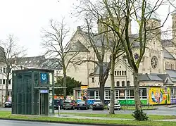 Der U-Bahnhof ERGO-Platz/Klever Straße (früher: U-Bahnhof Victoriaplatz/Klever Straße, davor Klever Straße) ist eine Station der Düsseldorfer Stadtbahn. Er liegt im Verlauf der ersten Stammstrecke im Stadtteil Pempelfort der nordrhein-westfälischen Landeshauptstadt Düsseldorf. Der unterhalb der Fischerstraße bis zur Kreuzung Klever Straße errichtete U-Bahnhof wurde am 3. Oktober 1981[1] dem Verkehr übergeben. Die über dem Bahnhof befindliche Straßenkreuzung führt mehrere wichtige Straßen der nördlichen Innenstadt zusammen. In direkter Nähe befinden sich zahlreiche Unternehmen sowie eine dichte Wohnstruktur. Der U-Bahnhof wird von den Stadtbahnlinien U78 und U79 bedient. Eine Verknüpfung mit einer weiteren Linie des Düsseldorfer Nahverkehrs besteht an einer oberirdischen Bushaltestelle. Im Jahr 2002 lag die Zahl der Ein-, Aus- und Umsteiger bei ca. 10.000 bis 15.000 je Werktag.[2] Mit Wechsel des Sommerfahrplans 2023 wurde auf Wunsch der ERGO-Versicherung durch die Bezirksvertretung, nachdem im Jahre 2018 der Victoriaplatz in ERGO-Platz umbenannt wurde, nun auch der Name des U-Bahnhofs angepasst.