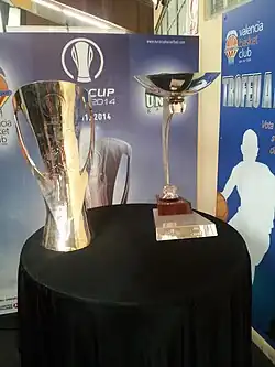 Trophäe des EuroCup (links) und des ULEB Cup bis 2008 (rechts)
