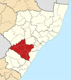 Der Distrikt befindet sich etwas südlich der Mitte der Provinz KwaZulu-Natal.