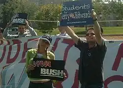 Bei dem mit einem Frühstart Anfang März 2004 begonnenen Wahlkampf kam es zunächst zu Protesten von Angehörigen der Opfer der Terroranschläge am 11. September 2001. Sie warfen Bush vor, Fotos aus jener Zeit, die den Präsidenten zusammen mit der Feuerwehr vor dem Hintergrund der Trümmer zeigen, für seinen Wahlkampf zu missbrauchen.