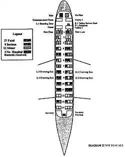Der Kapitän wurde bei dem Unfall getötet, der Erste Offizier überlebte. Insgesamt starben 27 der 51 Insassen der Maschine. Viele Passagiere, die eingeschlossen oder desorientiert waren, konnten ihre Sicherheitsgurte nicht lösen oder sich nicht aus dem Wrack retten und ertranken, obwohl sie ansonsten keine lebensbedrohlichen Verletzungen erlitten hatten. Die Überlebenden konnten die Maschine durch große Löcher im Flugzeugrumpf verlassen. Einige konnten selbst aus dem knietiefen Wasser klettern und über den Deich in Richtung Startbahn steigen, andere mussten durch andere Überlebende oder Rettungsmannschaften aus dem Wasser gezogen werden. Auf dem Wasser trieben brennende Wrackteile und dichter, schwarzer Rauch stieg auf.[3]