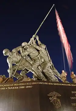 Auf der Plattform sind ebenfalls die Orte und Zeiten jeder großen Marine Corps Operation verzeichnet. 1961 beschloss Präsident John F. Kennedy, dass sowohl am Tag als auch in der Nacht eine US-Flagge auf dem Mahnmal wehen sollte.