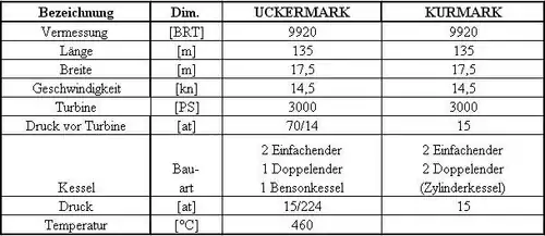 Der Vergleich der beiden Schiffe ergab für den Hauptantrieb allein auf den ersten drei ausgewerteten Reisen einen Durchschnittsverbrauch der Uckermark von 0,256 kg Brennstoff pro PSh gegenüber der Kurmark von 0,303 kg Brennstoff pro PSh.