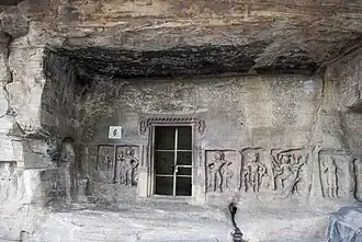 - Das Portal dieser Höhle ist mehrfach abgestuft und außergewöhnlich reich mit pflanzlichen Motiven ornamentiert; es endet in einem breiten T-förmigen Sturz. Links und rechts des Eingangs befinden sich zwei arg zerstörte Wächterfiguren (dvarapalas oder pratiharas); weiter außen stehen zwei Säulen, deren Schaft sich von einem quadratischen hin zu einem achteckigen und dann sechzehneckigen Querschnitt fortentwickelt. Von einer skulptierten Gruppe der sieben Matrikas ist nicht mehr viel erhalten. Im Innern erhebt sich ein knapp meterhoher – aus dem natürlichen Felsgestein herausgehauener – feinpolierter Lingam mit einem Gesicht des Gottes Shiva, das jedoch in späterer Zeit mehrere Beschädigungen erlitt. Die rückwärtige Seite des Lingam zeigt feine Linien, die die Form einer Eichel nachahmen; der Lingam steht in einer Yoni-artigen Vertiefung mit einer seitlichen Abflussrinne für Opferflüssigkeiten aller Art (Milch, Wasser etc.).