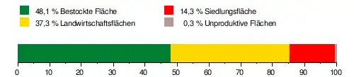 Es besteht zu 48,1 % aus bestockter Fläche, zu 37,3 % aus Landwirtschaftsfläche, zu 14,3 % aus Siedlungsfläche und zu 0,3 % aus unproduktiven Flächen.