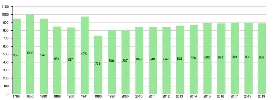 Die Bevölkerung wuchs von 1798 bis 1850 nur wenig (+ 5,6 %). Danach geriet die Gemeinde in den Sog der Landflucht, der Abwanderung von den Landgemeinden in die Industriezentren. Die Zahl der Bewohner sank bis ins Jahr 1900 (1850–1900: − 6,6 %); besonders stark von 1880 bis 1888 (− 10,1 %). Von zwei kurzen Stagnationsphasen abgesehen wuchs sie dann bis 1941 wieder fast auf den Stand von 1850 (1900–1941: + 16,5 %). Danach begann eine zweite grosse Abwanderungswelle, die bis ins Jahr 1980 anhielt (1941–1980: − 24,3 %), als ein absoluter Bevölkerungstiefststand erreicht wurde. Bis zur Jahrtausendwende folgte ein gemässigtes Bevölkerungswachstum (1980–2000: + 9,3 %), welches sich bis heute etwas geringer ausgeprägt fortsetzt (2000–2010: + 5,1 %).