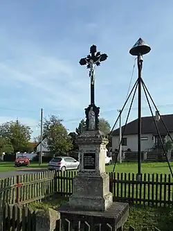 Wegkreuz und Dorfglocke in Uhlířská Lhota