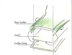 Bei der Turned Edge Technology wird das Oberleder über das Inlay geschlagen. Das Futterleder wird dann an der Unterseite des Inlays angebracht und mit dem Oberleder vernäht.