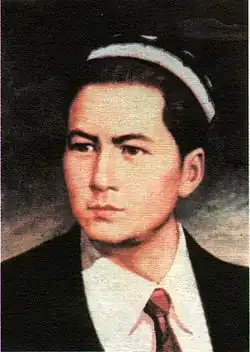 Lutpulla Mutellip (Lutfula Mutalip, 1922–1945) wurde bei Alamty in Kasachstan (nach anderen Angaben vielleicht in der Kasachischen Autonomen Präfektur Ili in Xinjiang geboren, wo kasachische Intellektuelle vor der russischen Revolution Zuflucht fanden). In der Schule lernte er die russische Literatur, aber auch moderne chinesische Autoren wie Lu Xun kennen. Er arbeitete seit 1937 (!) zunächst als Lehrer, dann als Übersetzer für russische Ingenieure und seit 1941 als Redakteur in Ürümqi.[19] Schon seine in jungem Alter verfassten Gedichte waren wegen der Schönheit ihrer Sprache berühmt. Nach der antikommunistischen Wende der lokalen Regierung wurde er 1944 in Aksu verhaftet und 1945 von den nationalistischen chinesischen Behörden liquidiert. Vielen Uiguren gilt er als Nationalheld.[20]
