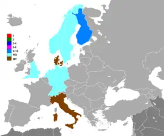 | 2013 | Schweden | nicht qualifiziert | – | In den Playoffs an Island gescheitert. | ||