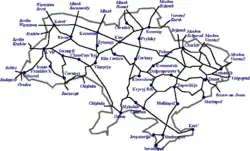 • Spurweite – 1520 mm; es gibt Schmalspurbahnen (meistens 750 mm breit) und wenige kurze normalspurige (1435 mm) Strecken, deren Netzumfang allerdings ins Landesinnere erweitert werden soll.[31]