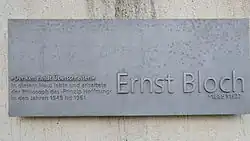 Gedenktafel am Wohnhaus von Ernst Bloch in Leipzig-Schleußig, Wilhelm-Wild-Str. 8 (nach einem Entwurf von Ulf Puder)