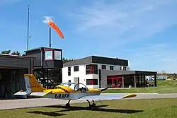 Es bestehen mehrere Wirtschaftsgebäude, ein Clubheim, eine Kapelle, ein Tower (Frequenz 128,755 MHz) und mehrere Hangars. Eine Tankstelle ist nicht vorhanden. Ölservice ist möglich.
