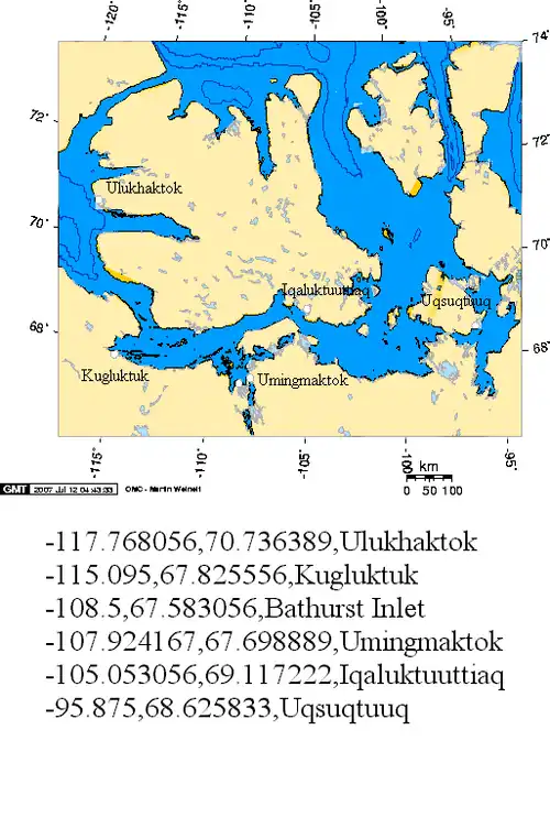 | Koordinaten: | 70° 44′ N, 117° 46′ W | ||