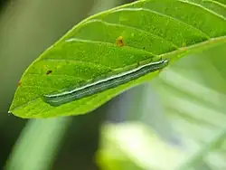 Erwachsene Raupen sind farblich außerordentlich variabel, erscheinen in hell grüngelben bis nahezu schwarzen Färbungen und zeigen teilweise weiße Längsstreifen.