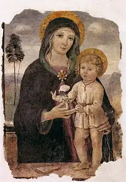- ↑ so z. B. Scuola Umbra: Madonna con Bambino. Auktionshaus Christie’s, Rom: Verkauf 2451 Diponit e Disegni Antichi Juni 2004 Los 271 (aufgerufen Juni 2011)