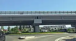 Die Ringautobahn wird mittels eines geschwungenen, 420 Meter langen Viadukts über Kreisverkehr und Fluss geführt und setzt sich nach Norden fort.[39]