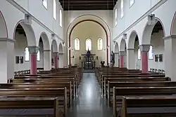 Der im Jahre 1887 begonnene Kirchenbau ist im neuromanischen Stil errichtet. 1977 wurde eine Neueinrichtung des Hauptaltars vorgenommen. Die Weihe durch Bischof Heinrich Maria Janssen erfolgte am 18. Dezember 1977.