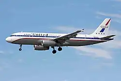 Mitte 1992 orderte United mit 50 Stück des 1988 auf den Markt gebrachten Airbus A320 zum ersten Mal in der Unternehmensgeschichte Flugzeuge des europäischen Flugzeugherstellers Airbus, die Ende 1993 geliefert wurden.[24][25] Im Jahr 1996 bestellte United 24 Maschinen des A319.[26] Bis heute verfügt United neben diesen beiden Typen über keine anderen Airbus-Flugzeuge, wenngleich die Fluggesellschaft im März 2010 25 Airbus A350-900 bestellte und diese Bestellung im Juni 2013 in 35 Airbus A350-1000 sowie Anfang September 2017 in 45 Airbus A350-900 mit erwarteter Auslieferung zwischen 2022 und 2027 umwandelte.[27]