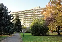 Die Uniklinik Pécs hat eine Kapazität von 1350 Betten und besteht aus einem Zusammenschluss von mehreren, teilweise über die Stadt verteilten Krankenhäusern.