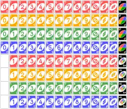 Uno (italienisch und spanisch für eins) ist ein US-amerikanisches Kartenspiel, dessen primäres Ziel es ist, seine Karten möglichst schnell abzulegen. Uno ähnelt also Mau-Mau – mit dem Unterschied, dass nicht mit einem regulären Kartenset gespielt wird, sondern mit einem speziellen Blatt.