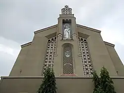 Die einschiffige Kirche hat einen kreuzförmigen Grundriss. Über der Eingangsfassade mit einer Marienstatue erhebt sich ein Glockengiebel. Der Altar steht in einer runden Apsis. Die Kirche ist mit ihren farbenprächtigen Bleiverglasungen ein beliebter Ort für Hochzeiten. Außerdem ist ein Kolumbarium an die Kirche angeschlossen.