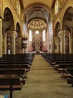 Auf beiden Seiten des Querschiffs finden sich jeweils zwei Seitenaltäre. Die beiden größeren, nächst dem Triumphbogen, sind links Maria und rechts Joseph gewidmet. Die gekrönte Maria wird flankiert von ihren Eltern Anna und Joachim. In einem Gemälde über dem Altar wird in der Verkündigung durch den Engel die Geburt Jesu angekündigt. Links neben dem Marienaltar steht ein kleinerer Pietàaltar, in dessen Altartisch Figurenbüsten mit Jesaia, David und Jeremias eingelassen sind. Über dem Pietàaltar findet sich ein eher seltenes Osterbild, das Christus als den Auferstandenen mit Siegesfahne, als Erlöser der Toten und den Sieg über den Tod zeigt.